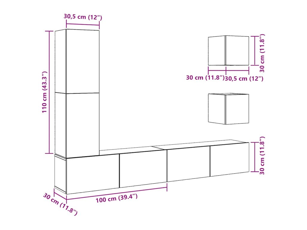 - 1x TV skříňka: 30,5 x 30 x 110 cm (Š x H x V)
