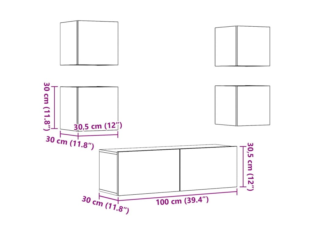 - Rozměry TV skříňky (velká): 100 x 30 x 30 cm (D x Š x V)