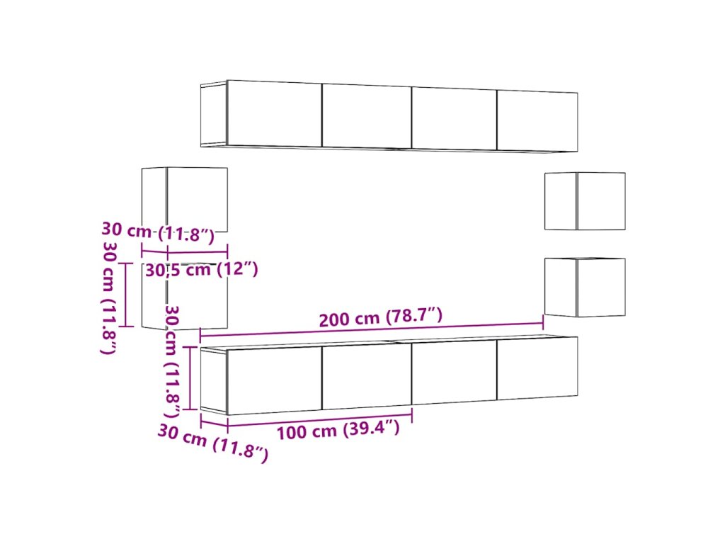 - 4x TV skříňka: 100 x 30 x 30 cm (Š x H x V)