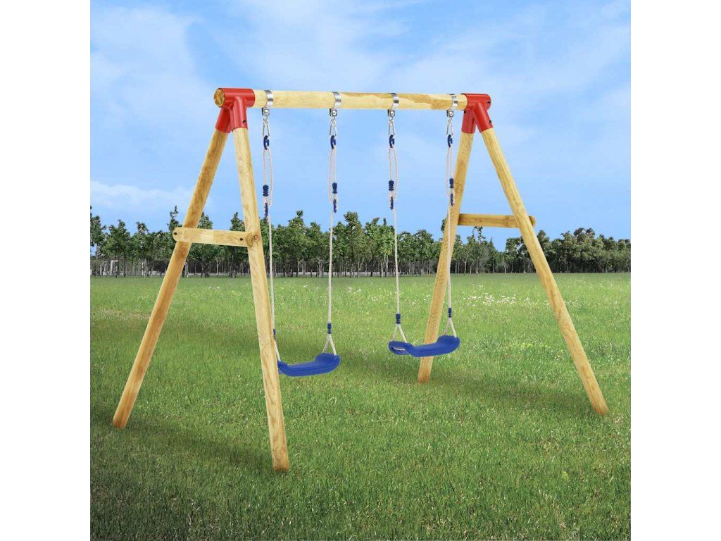 Tento dřevěný houpačkový set je odolný vůči UV záření a vaše děti si ho okamžitě oblíbí!