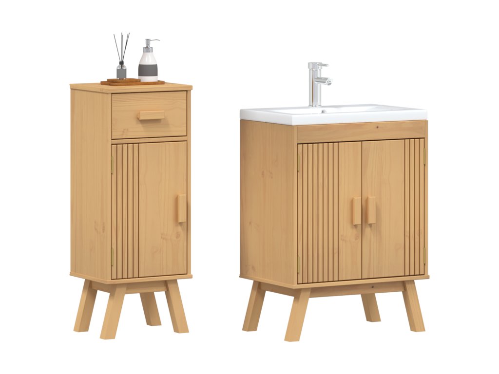- Tato sada obsahuje krásně udělané umyvadlo a skříňku, co skvěle spojují funkčnost a hezký vzhled.