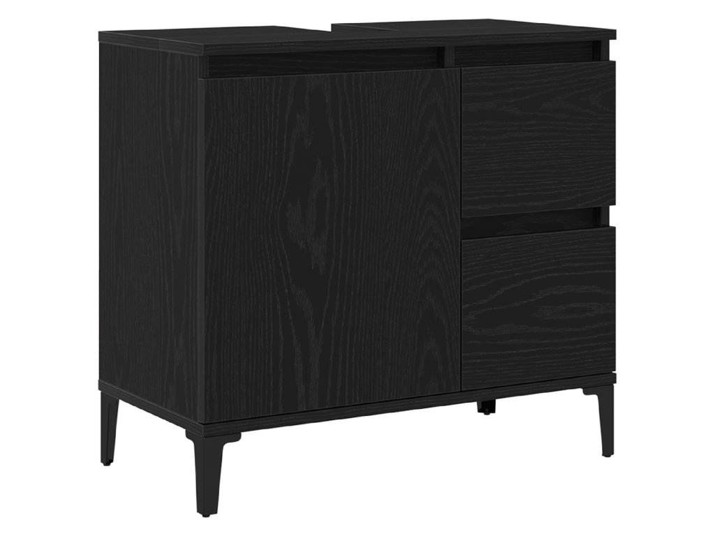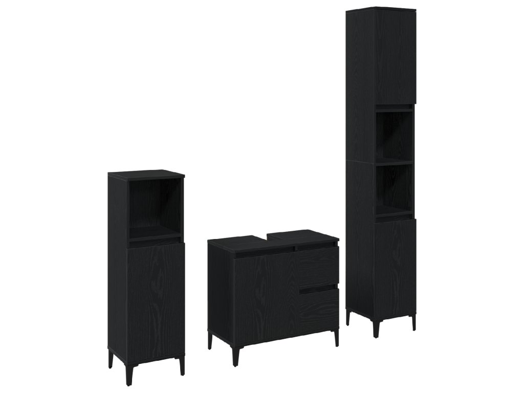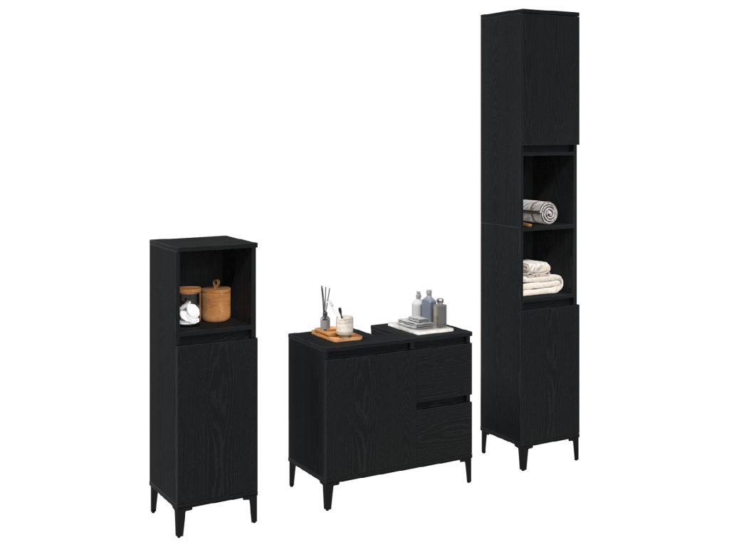 Tato sada koupelnových skříněk s elegantním černým dubovým povrchem je skvělá pro stylové úložiště v moderních koupelnách. Dřevotříska spojuje trvanlivost a styl, zlepšuje vzhled tvé koupelny a všechny věci drží v pořádku.