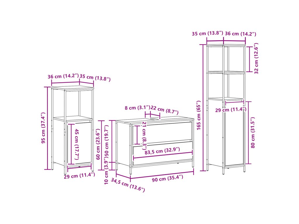 | Velikost: | 90 x 34.5 x 60 cm / 36 x 35 x 165 cm / 36 x 35 x 95 cm |