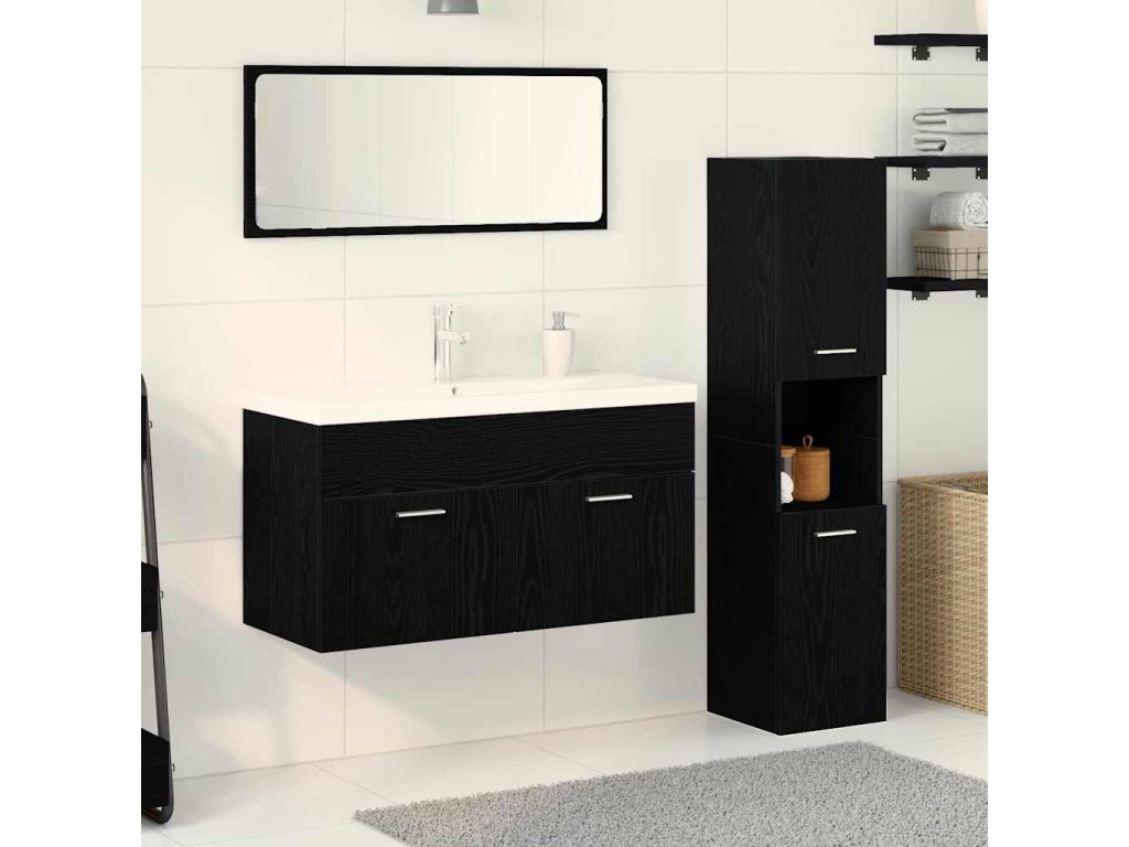 Sada dřevěného koupelnového nábytku dodá moderní nádech každé koupelně. Její čisté linie a montáž na zeď znamenají jednoduchost a praktičnost, což ji dělá ideální pro dnešní domácnosti. S hladkým a minimalistickým stylem šetří místo a splňuje všechny úložné potřeby—perfektní pro rodiny a jednotlivce, kteří chtějí mít uklizené a stylové koupelny.