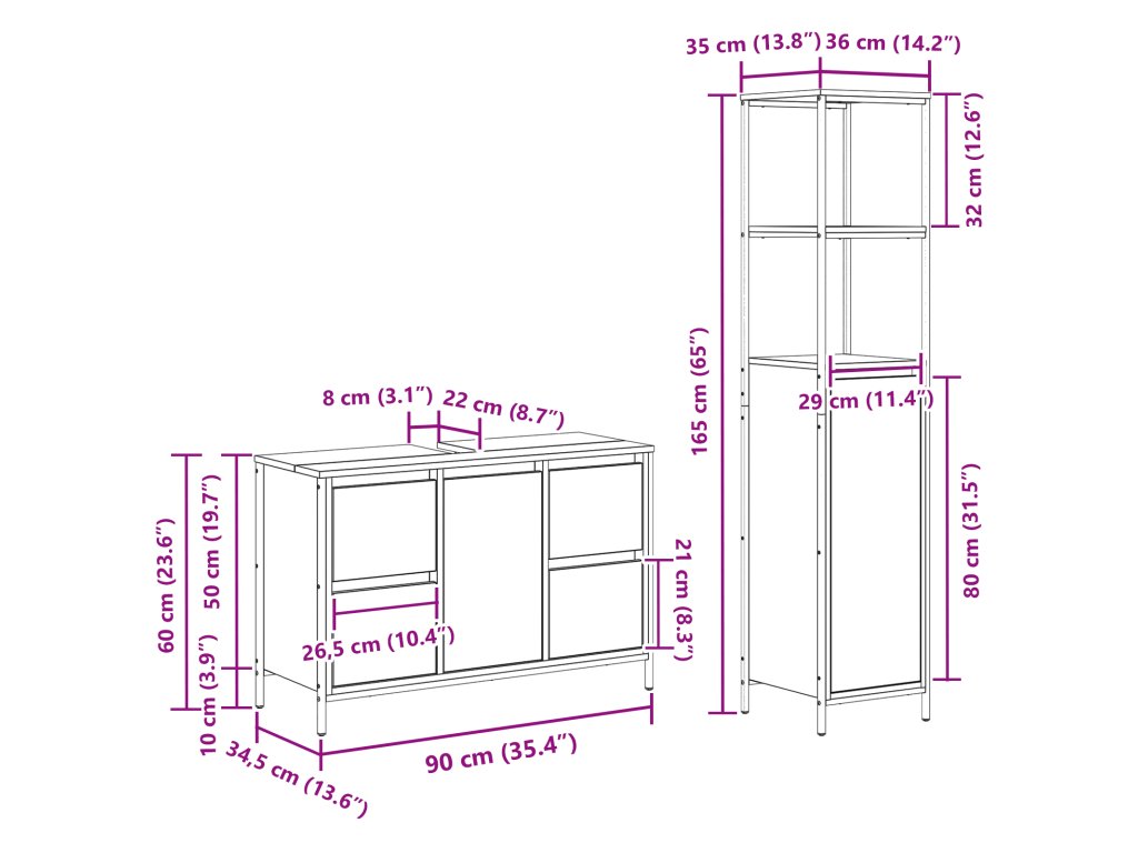 - Dimensions: 90 x 34.5 x 60 cm (W x D x H)