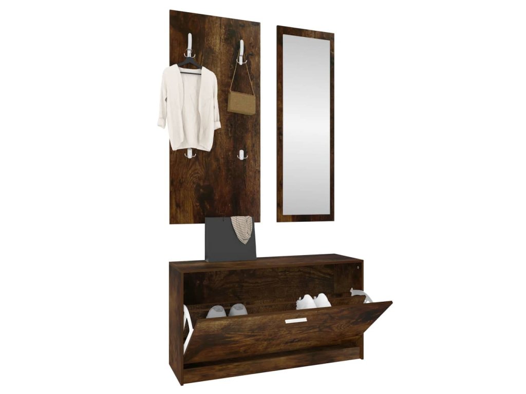 Tato sada do předsíně 3 v 1 se skládá ze stylového botníku, nástěnného zrcadla a věšáku a nabízí nespočet úložných řešení.