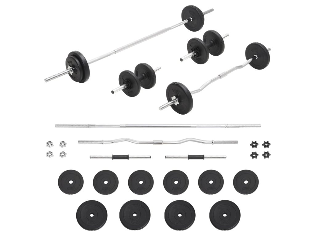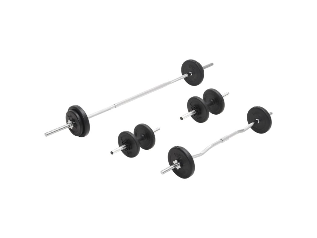 Tato všestranná sada obouručních a jednoručních činek je perfektní volbou pro ty, kteří hledají různé možnosti cvičení.