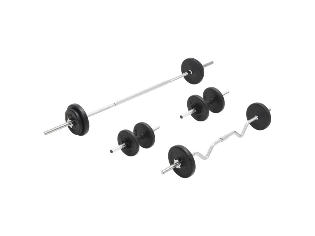 Tato všestranná sada obouručních a jednoručních činek je perfektní volbou pro ty, kteří hledají různé možnosti cvičení.