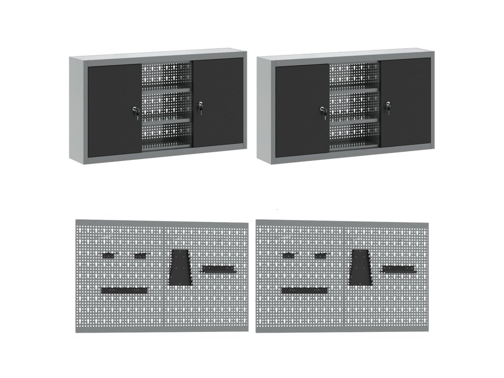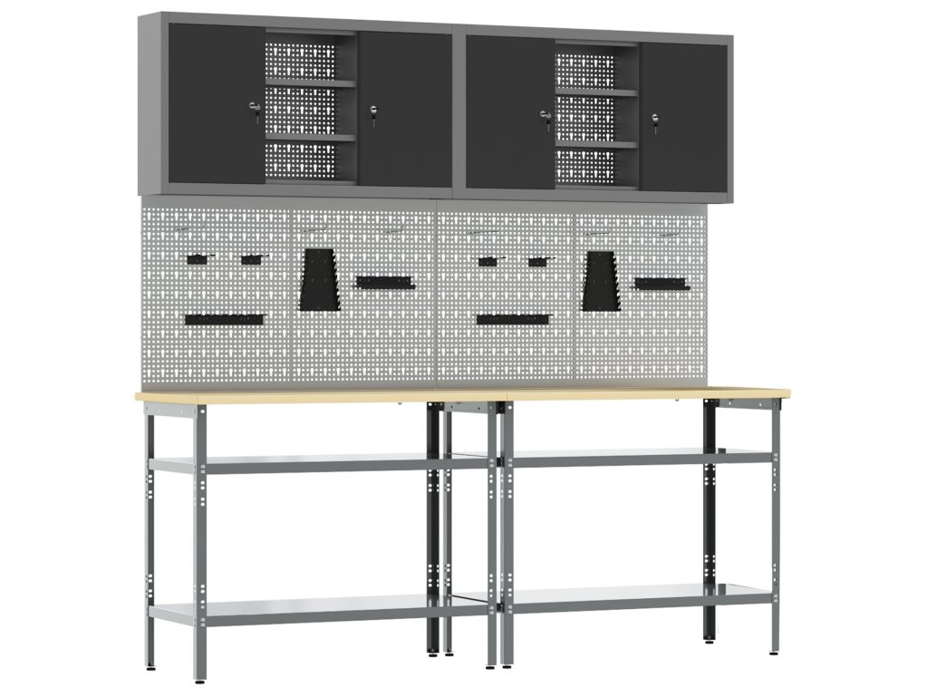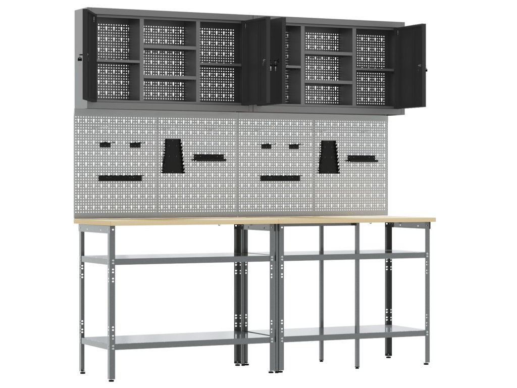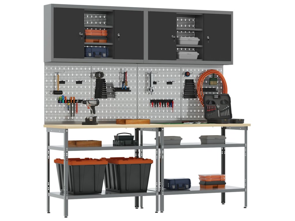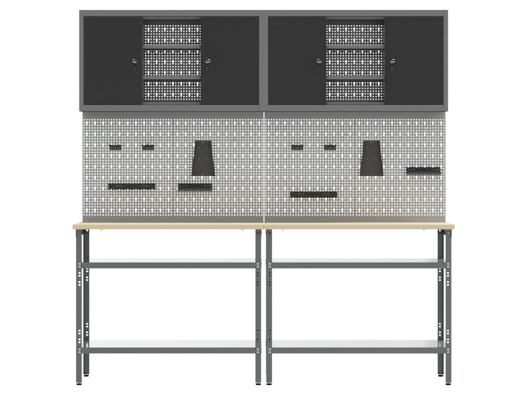 - Dodávka obsahuje: 2 x stoly, 4 x nástěnné panely, 2 x skříně s pegboardem