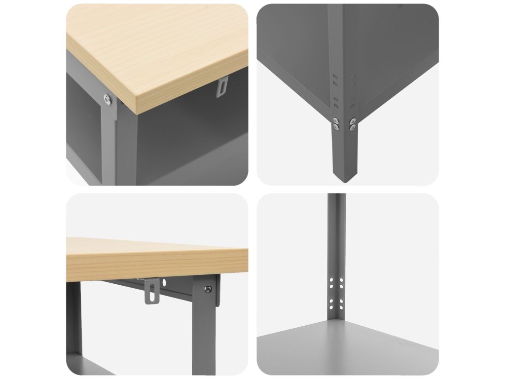 - Nastavitelné police: Tento pracovní stůl obsahuje výškově nastavitelné police, takže si můžeš přizpůsobit úložný prostor podle svých potřeb. Ať už potřebuješ více místa na velké nářadí, nebo třídíš zásoby, nastavitelné police všechno uspořádají, abys to měl po ruce.