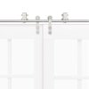 Pomocí této sady kování pro posuvné dveře můžete snadno nastavit dvě kolejnice pro dvojici dveří, které se budou posouvat před sebou a za sebou.