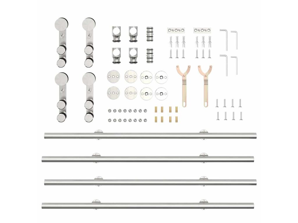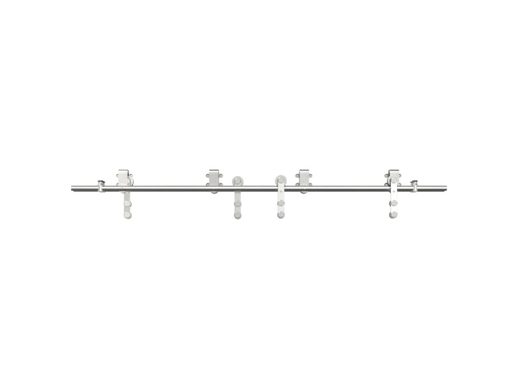 Pomocí této sady kování pro posuvné dveře můžete snadno nastavit dvě kolejnice pro dvojici dveří, které se budou posouvat před sebou a za sebou.