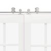 Pomocí této sady kování pro posuvné dveře můžete snadno nastavit dvě kolejnice pro dvojici dveří, které se budou posouvat před sebou a za sebou.
