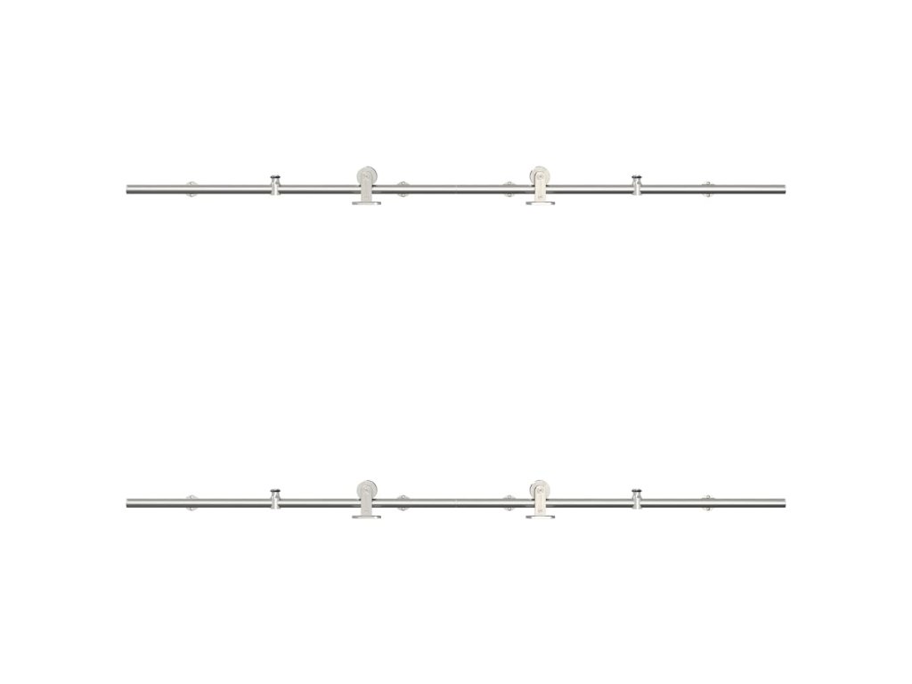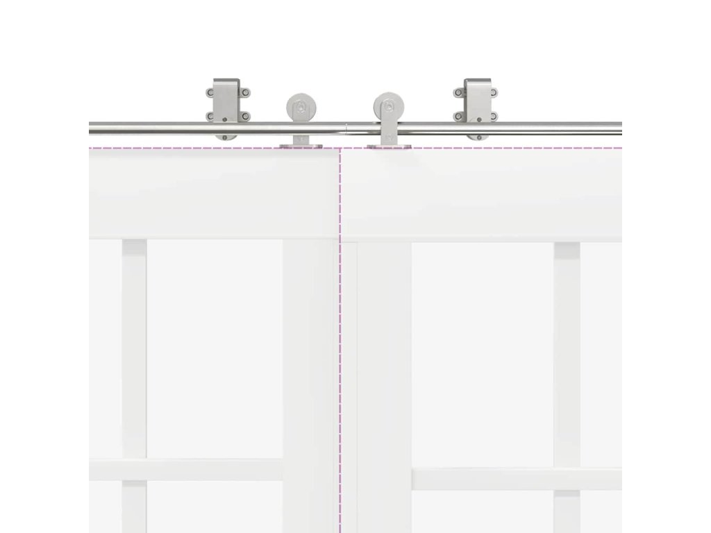 Pomocí této sady kování pro posuvné dveře můžete snadno nastavit dvě kolejnice pro dvojici dveří, které se budou posouvat před sebou a za sebou.