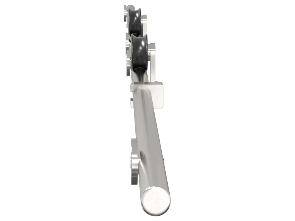- Bezpečné a spolehlivé: Pomocí vnitřních ložisek se mohou dveře posouvat hladce a tiše. Součástí jsou také dveřní zarážky, které zabraňují vykolejení válečků, zatímco pryžové těsnění tlumí jejich nárazy a snižuje hluk.