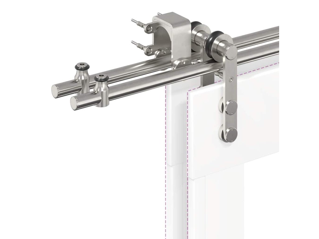 - Ideální pro dvojitá stodolová vrata: V případě omezeného prostoru na stěně umožňuje sada obchozího držáku stodolových dveří nezávislé posouvání dvou stodolových dveří po dvou kolejnicích bez nutnosti dalšího volného prostoru.
