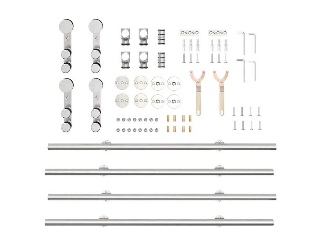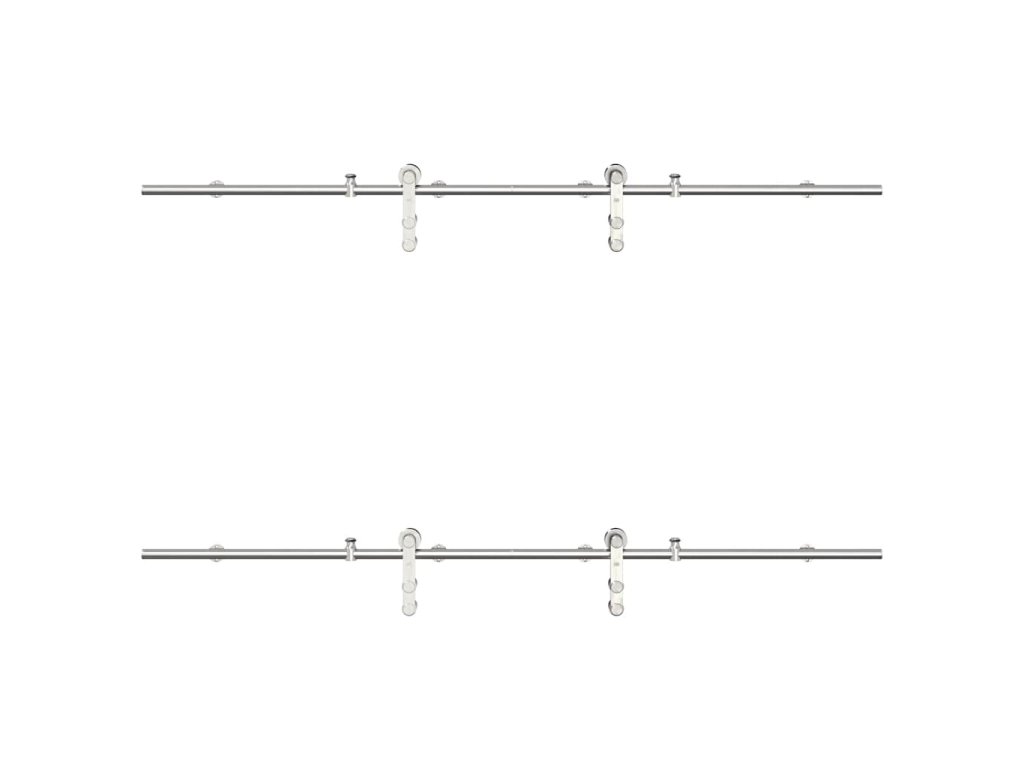 Pomocí této sady kování pro posuvné dveře můžete snadno nastavit dvě kolejnice pro dvojici dveří, které se budou posouvat před sebou a za sebou.