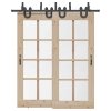 Pomocí této sady kování pro posuvné dveře můžete snadno nastavit dvě kolejnice pro dvojici dveří, které se budou posouvat před sebou a za sebou.