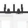 Pomocí této sady kování pro posuvné dveře můžete snadno nastavit dvě kolejnice pro dvojici dveří, které se budou posouvat před sebou a za sebou.