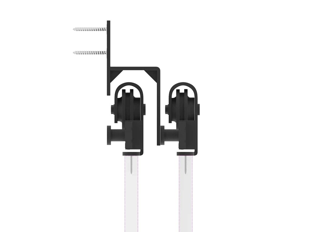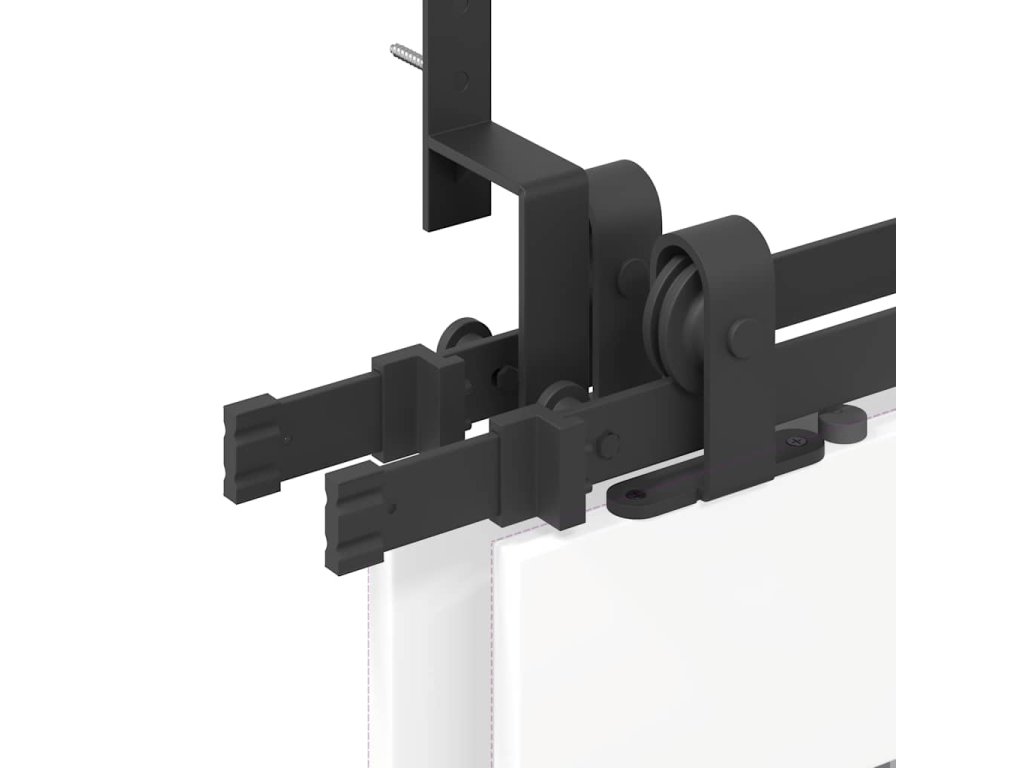 - Ideální pro dvojitá stodolová vrata: V případě omezeného prostoru na stěně umožňuje sada obchozího držáku stodolových dveří nezávislé posouvání dvou stodolových dveří po dvou kolejnicích bez nutnosti dalšího volného prostoru.