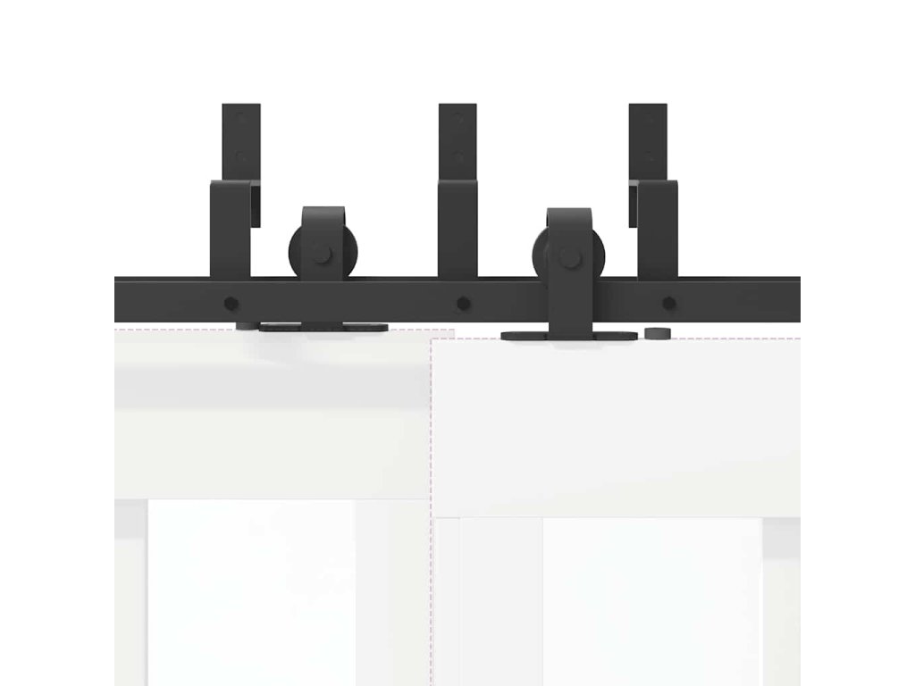 Pomocí této sady kování pro posuvné dveře můžete snadno nastavit dvě kolejnice pro dvojici dveří, které se budou posouvat před sebou a za sebou.