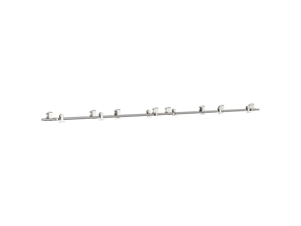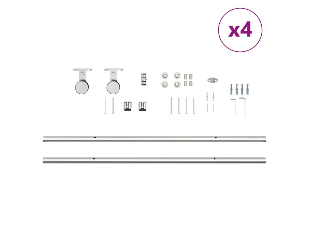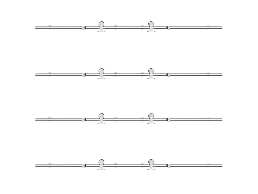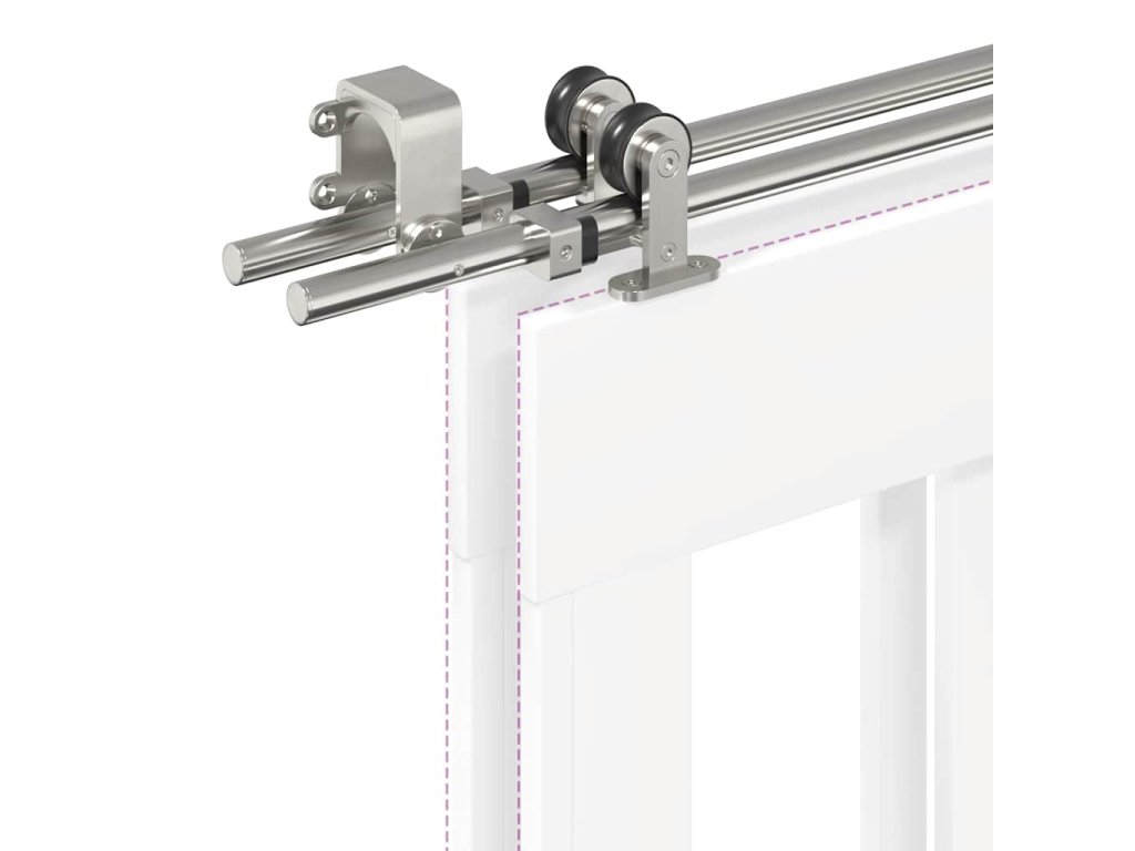 Pomocí této sady kování pro posuvné dveře můžete snadno nastavit dvě kolejnice pro dvojici dveří, které se budou posouvat před sebou a za sebou.