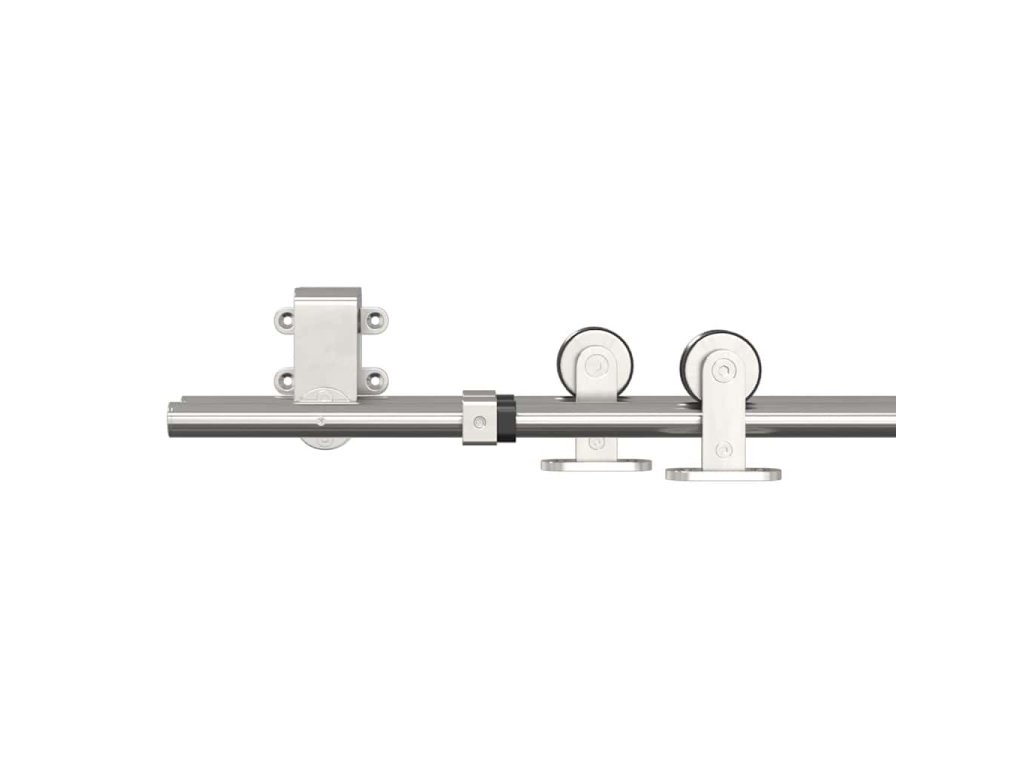 - Ideální pro dvojitá stodolová vrata: V případě omezeného prostoru na stěně umožňuje sada obchozího držáku stodolových dveří nezávislé posouvání dvou stodolových dveří po dvou kolejnicích bez nutnosti dalšího volného prostoru.