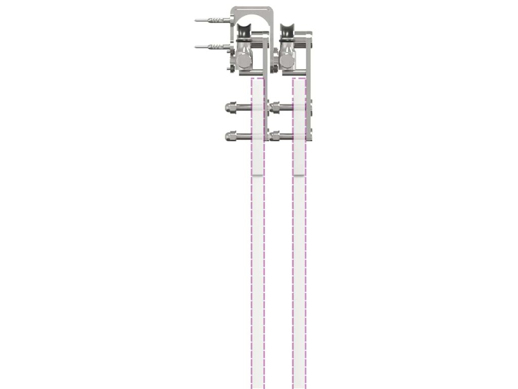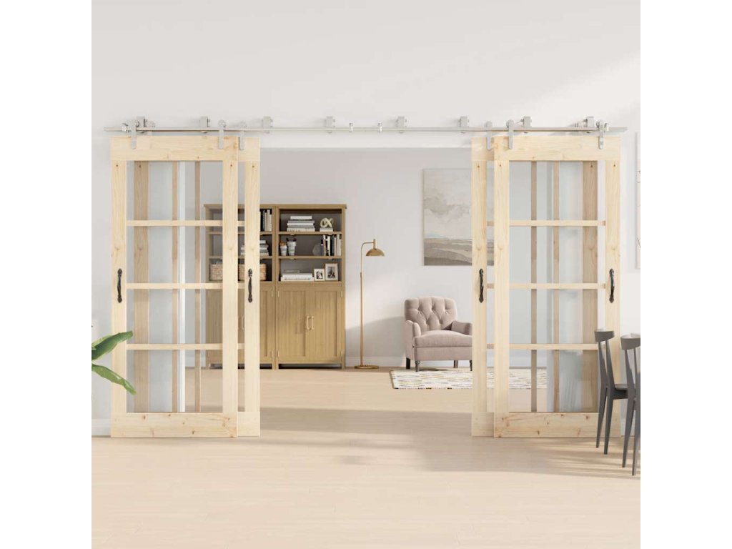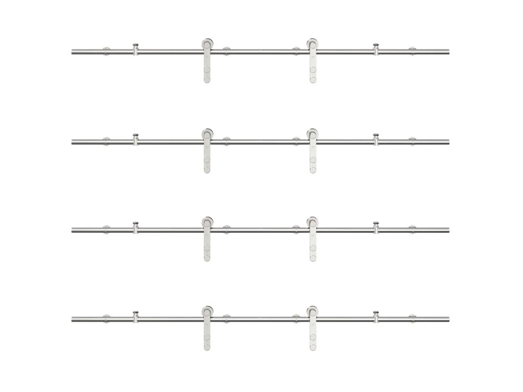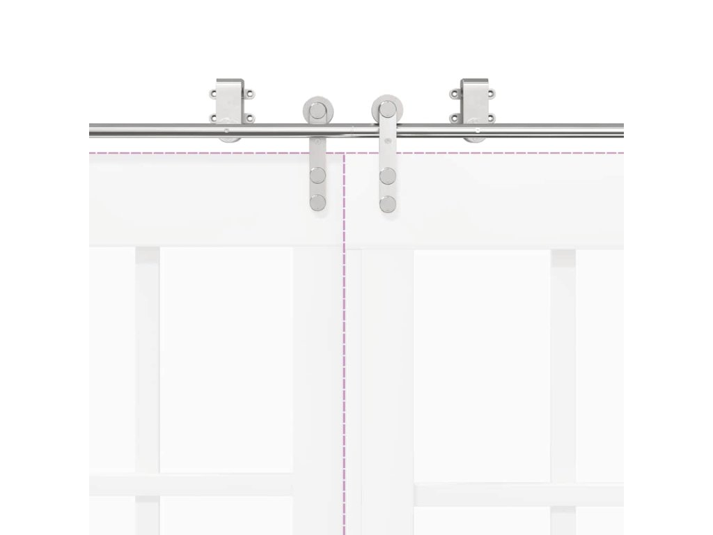 Pomocí této sady kování pro posuvné dveře můžete snadno nastavit dvě kolejnice pro dvojici dveří, které se budou posouvat před sebou a za sebou.