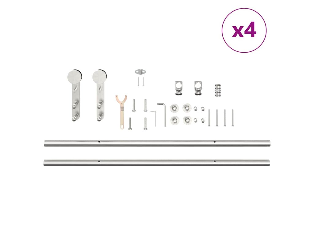 - Součástí dodávky je pouze sada kování pro posuvné dveře. Dveře nejsou součástí dodávky.