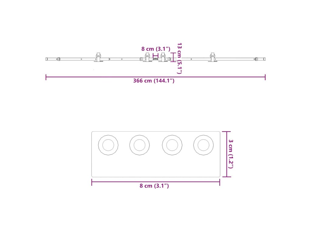 - Celková délka posuvné kolejnice: 366 cm