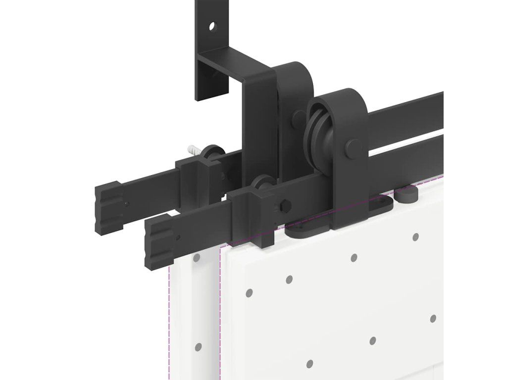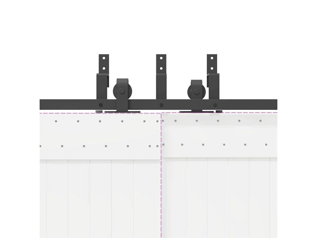 - Ideální pro dvojitá stodolová vrata: V případě omezeného prostoru na stěně umožňuje sada obchozího držáku stodolových dveří nezávislé posouvání dvou stodolových dveří po dvou kolejnicích bez nutnosti dalšího volného prostoru.