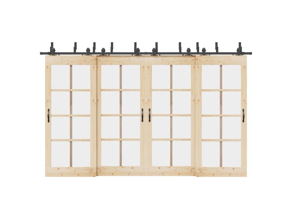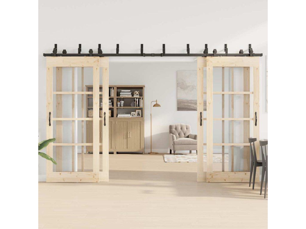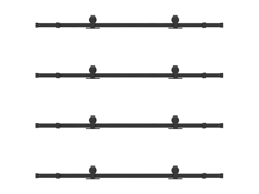 Pomocí této sady kování pro posuvné dveře můžete snadno nastavit dvě kolejnice pro dvojici dveří, které se budou posouvat před sebou a za sebou.