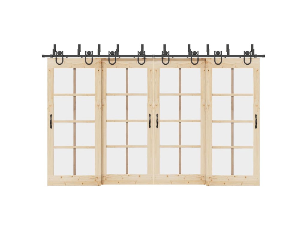- Ideální pro dvojitá stodolová vrata: V případě omezeného prostoru na stěně umožňuje sada obchozího držáku stodolových dveří nezávislé posouvání dvou stodolových dveří po dvou kolejnicích bez nutnosti dalšího volného prostoru.