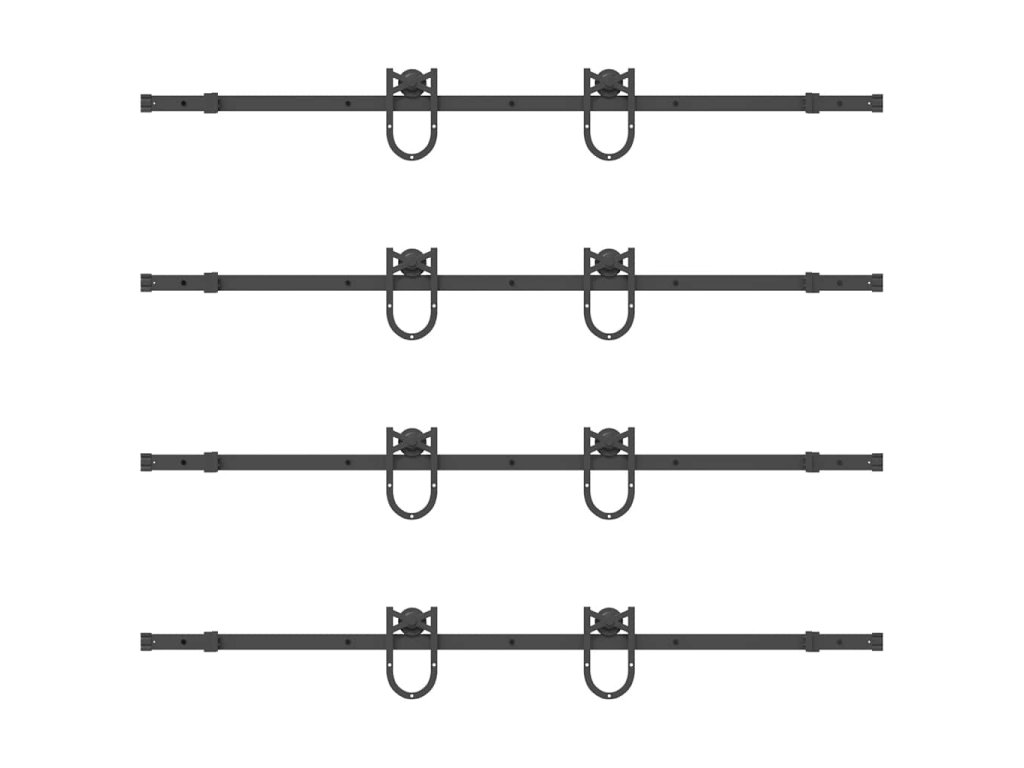 Pomocí této sady kování pro posuvné dveře můžete snadno nastavit dvě kolejnice pro dvojici dveří, které se budou posouvat před sebou a za sebou.