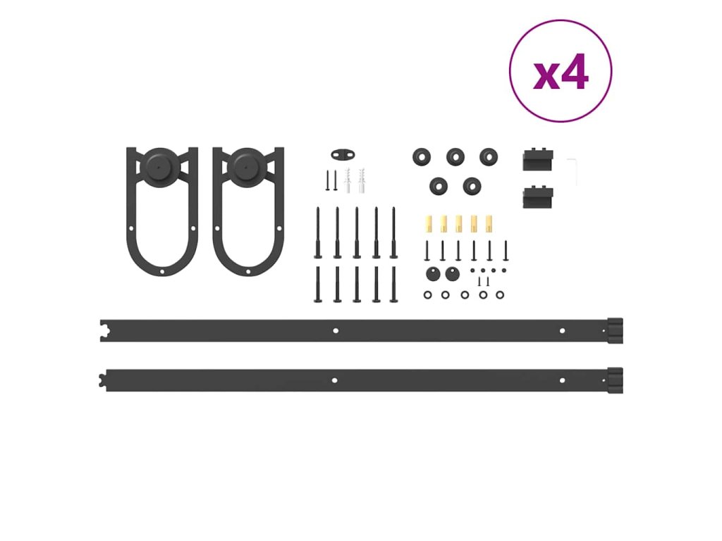 - Součástí dodávky je pouze sada kování pro posuvné dveře. Dveře nejsou součástí dodávky.