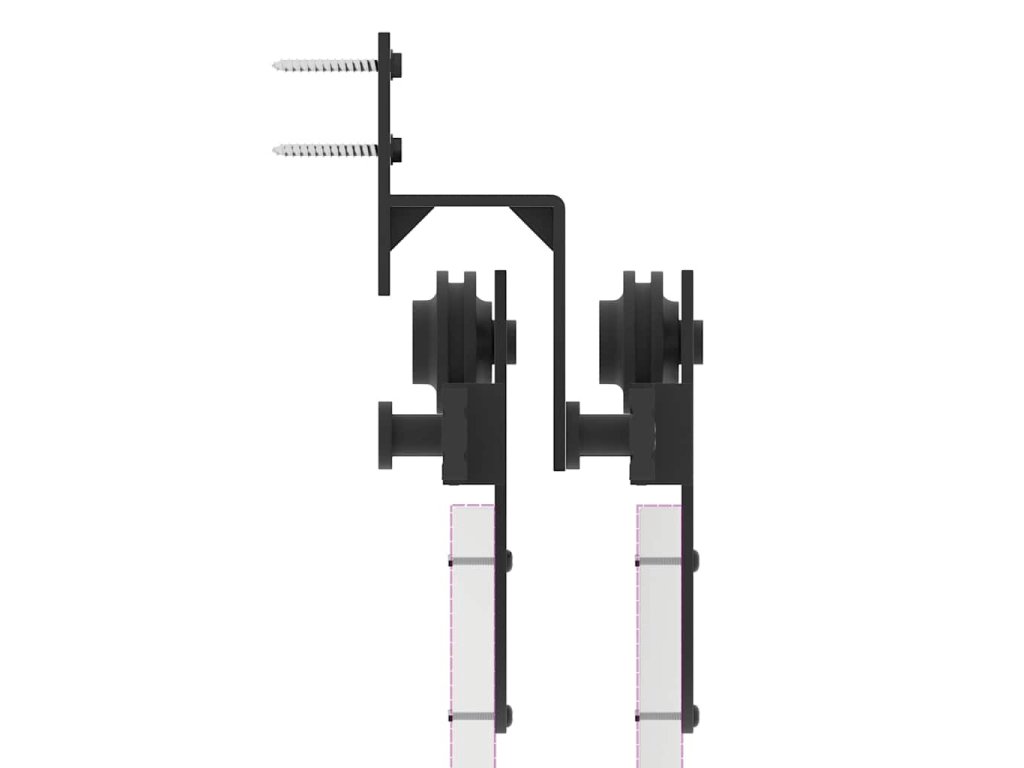- Ideální pro dvojitá stodolová vrata: V případě omezeného prostoru na stěně umožňuje sada obchozího držáku stodolových dveří nezávislé posouvání dvou stodolových dveří po dvou kolejnicích bez nutnosti dalšího volného prostoru.