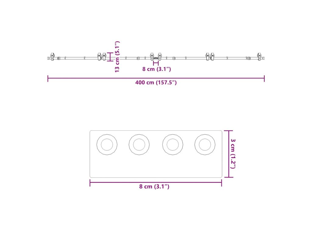 - Celková délka posuvné kolejnice: 400 cm