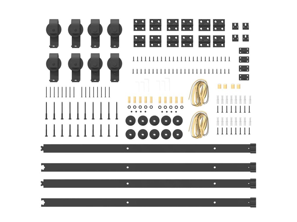 - Součástí dodávky je pouze sada kování pro posuvné dveře. Dveře nejsou součástí dodávky.