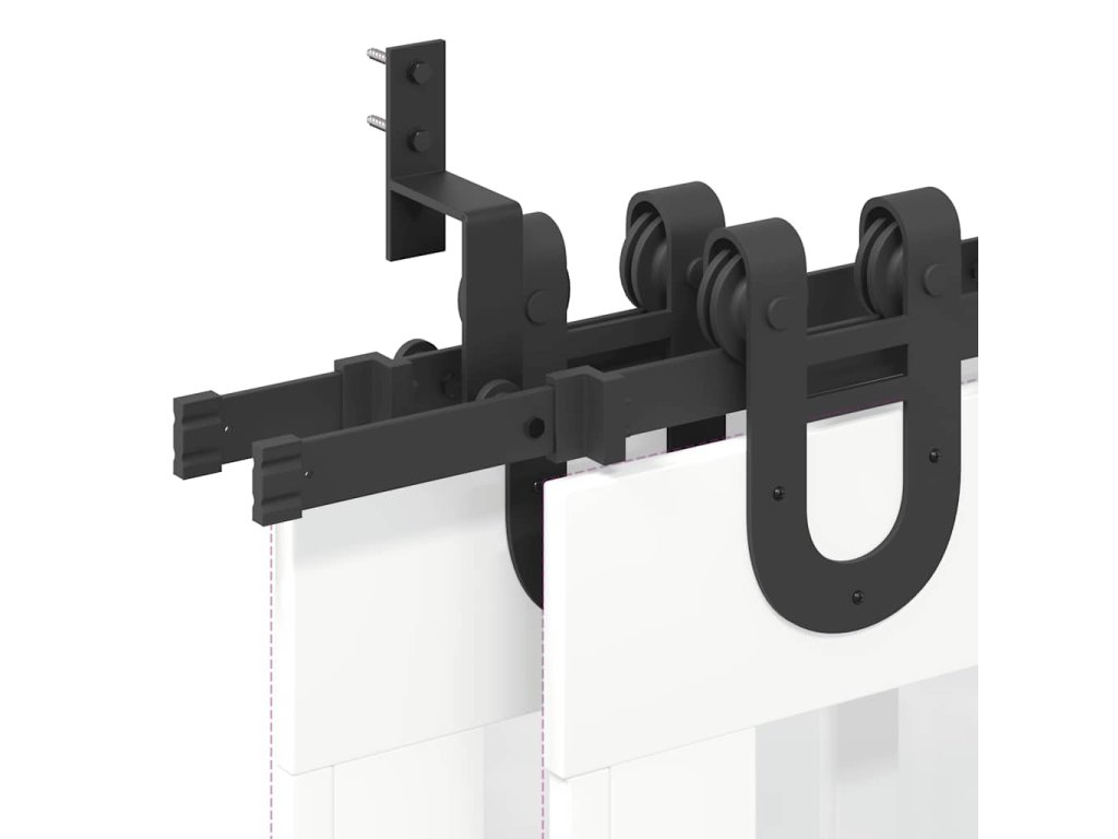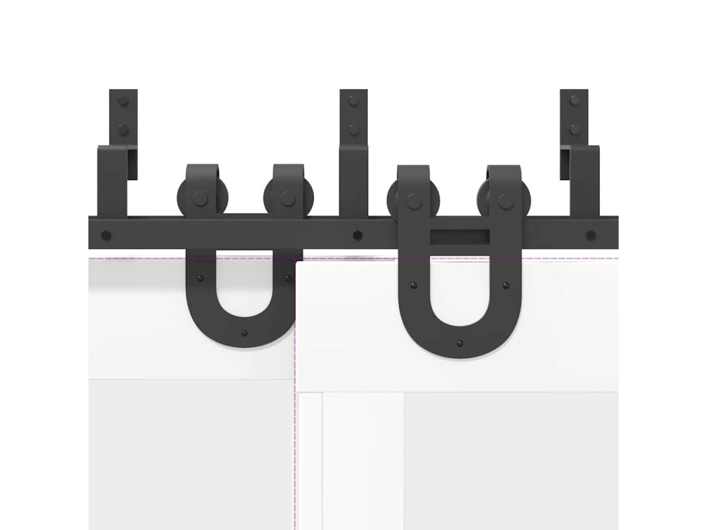 Pomocí této sady kování pro posuvné dveře můžete snadno nastavit dvě kolejnice pro dvojici dveří, které se budou posouvat před sebou a za sebou.