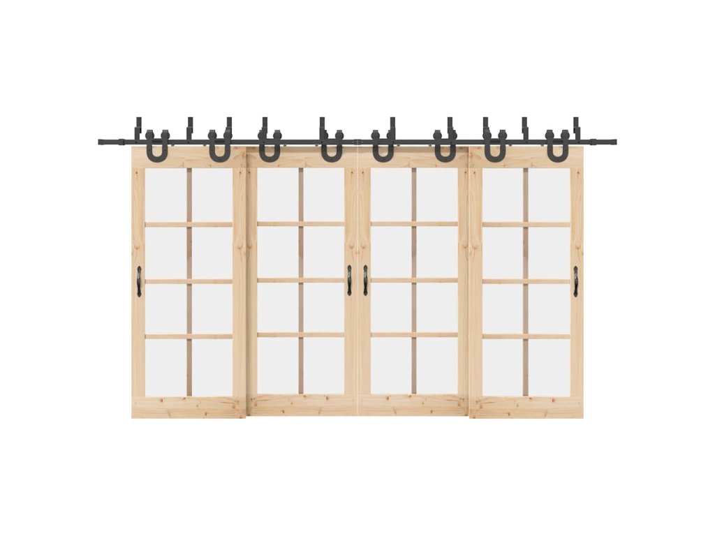 - Ideální pro dvojitá stodolová vrata: V případě omezeného prostoru na stěně umožňuje sada obchozího držáku stodolových dveří nezávislé posouvání dvou stodolových dveří po dvou kolejnicích bez nutnosti dalšího volného prostoru.
