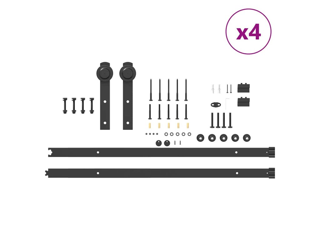 - Součástí dodávky je pouze sada kování pro posuvné dveře. Dveře nejsou součástí dodávky.