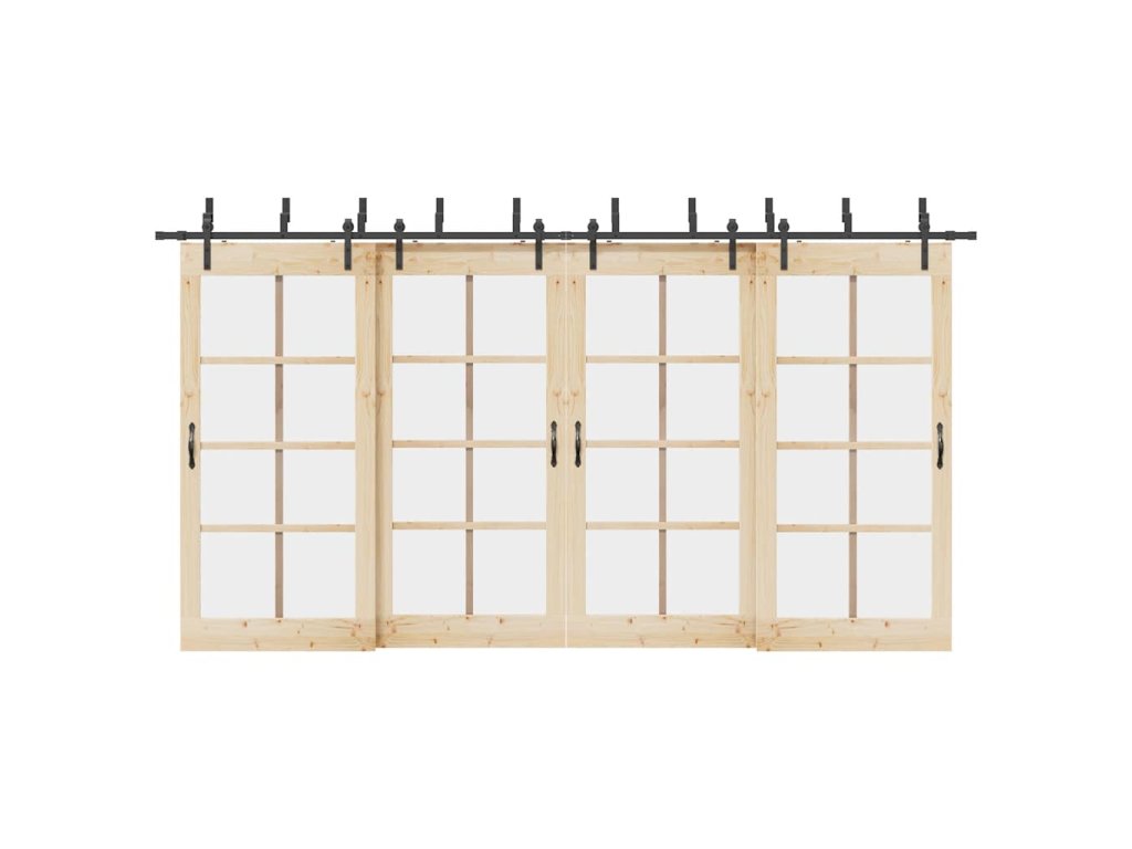 - Ideální pro dvojitá stodolová vrata: V případě omezeného prostoru na stěně umožňuje sada obchozího držáku stodolových dveří nezávislé posouvání dvou stodolových dveří po dvou kolejnicích bez nutnosti dalšího volného prostoru.