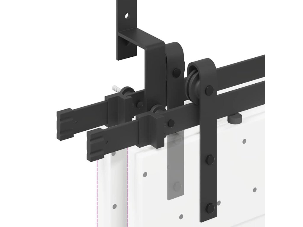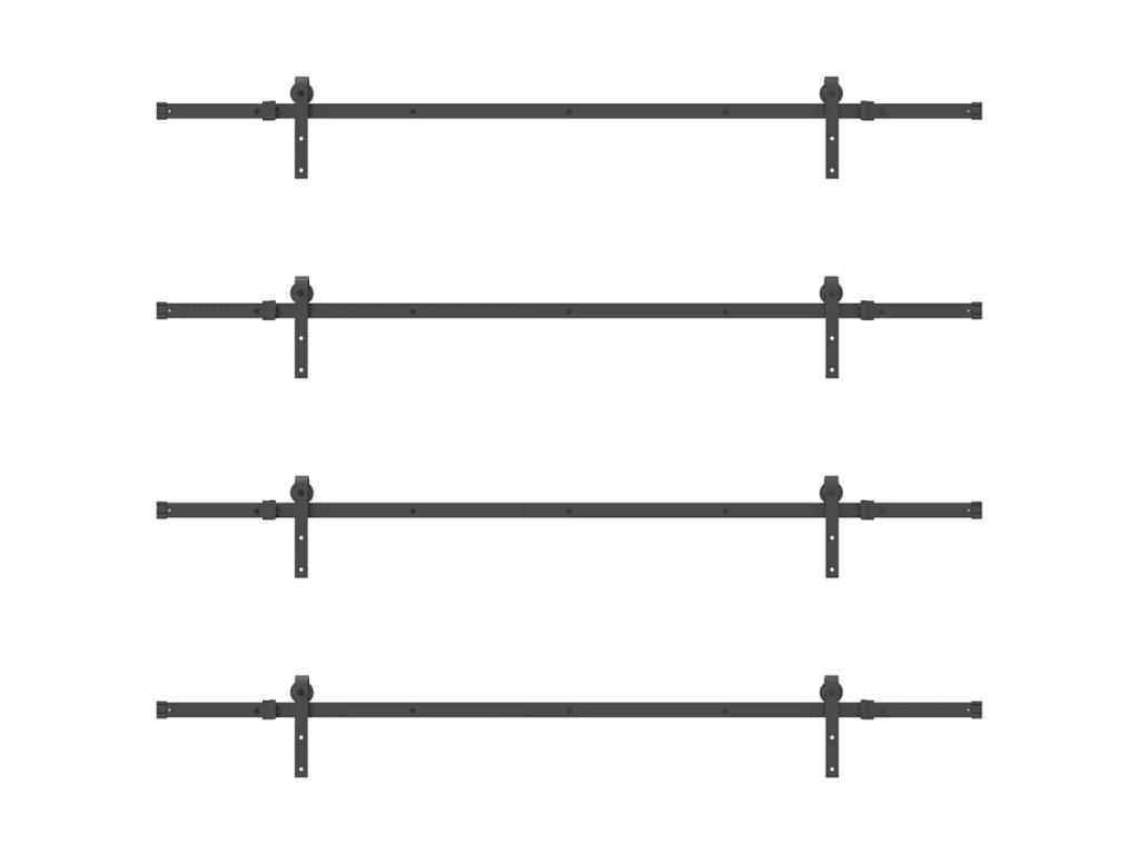 Pomocí této sady kování pro posuvné dveře můžete snadno nastavit dvě kolejnice pro dvojici dveří, které se budou posouvat před sebou a za sebou.