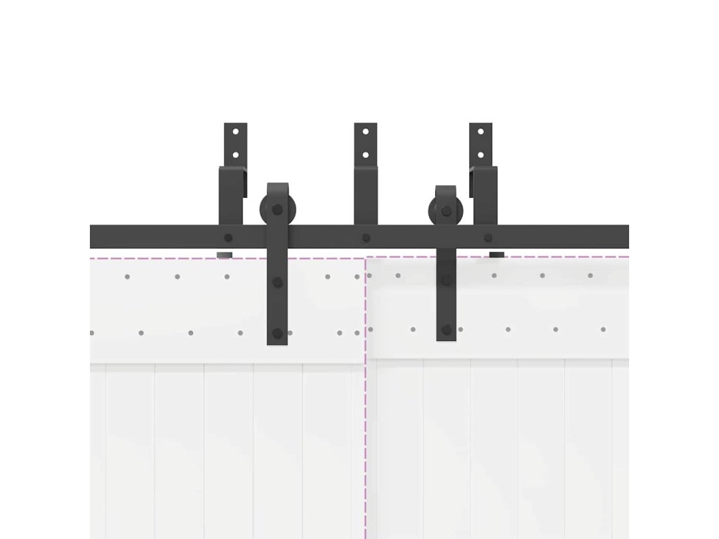 - Ideální pro dvojitá stodolová vrata: V případě omezeného prostoru na stěně umožňuje sada obchozího držáku stodolových dveří nezávislé posouvání dvou stodolových dveří po dvou kolejnicích bez nutnosti dalšího volného prostoru.