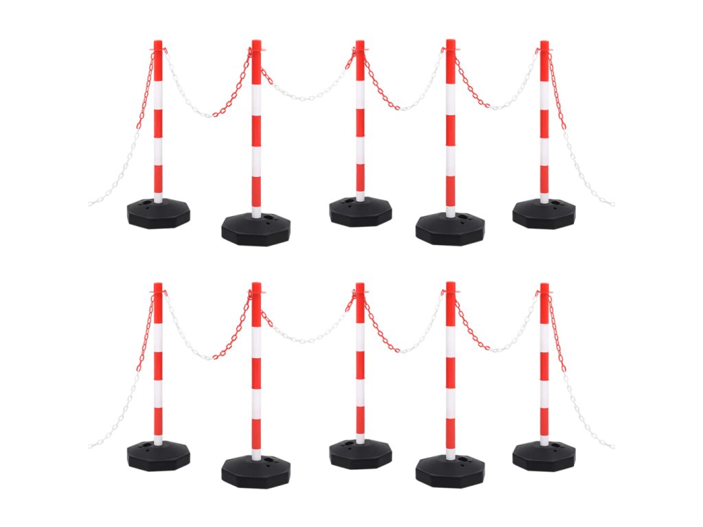 Plastový řetěz o délce 10 m lze snadno připevnit k sloupkům, a vytvořit tak vymezenou oblast. Sada je lehká a snadno přenosná. Pro větší stabilitu můžete základny sloupků naplnit vodou nebo pískem. Sada dopravních sloupků má jasné barvy, je tedy dobře viditelná i při slabém osvětlení.