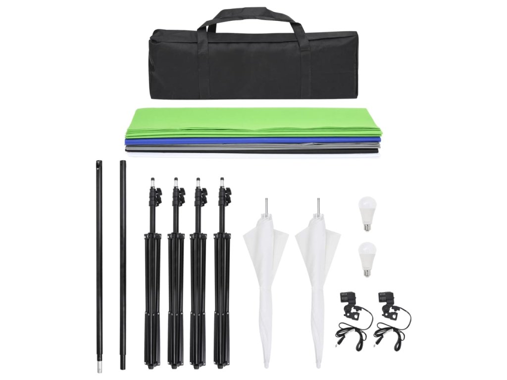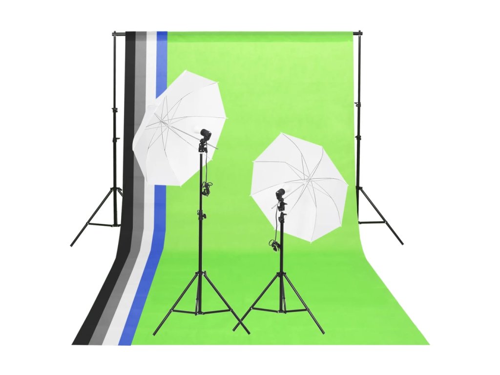 Tato flexibilní sada vybavení do fotostudia s pozadími a reflexními deštníky je vhodná pro fotografování/filmování ve studiu i v exteriéru.