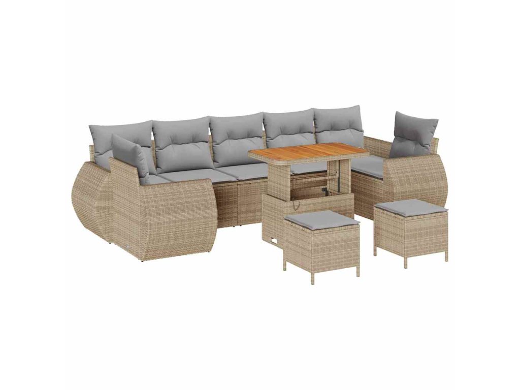 - Součásti: Set obsahuje víceúčelové prvky jako nastavitelný stůl a modulární sezení. Arm sofa a stoličky nabízejí dostatek místa pro sezení a lavice mají skryté úložné prostory, což je dost praktické. Rukávy s poly ratanovým potahem jsou pohodlné a vypadají dobře.