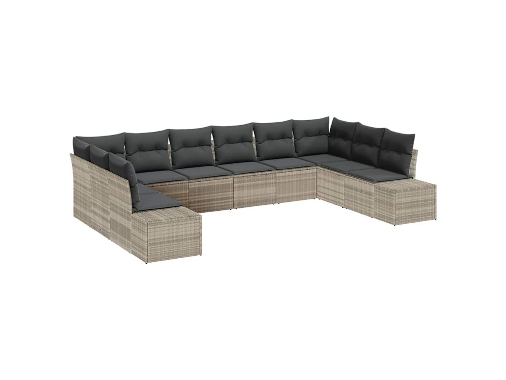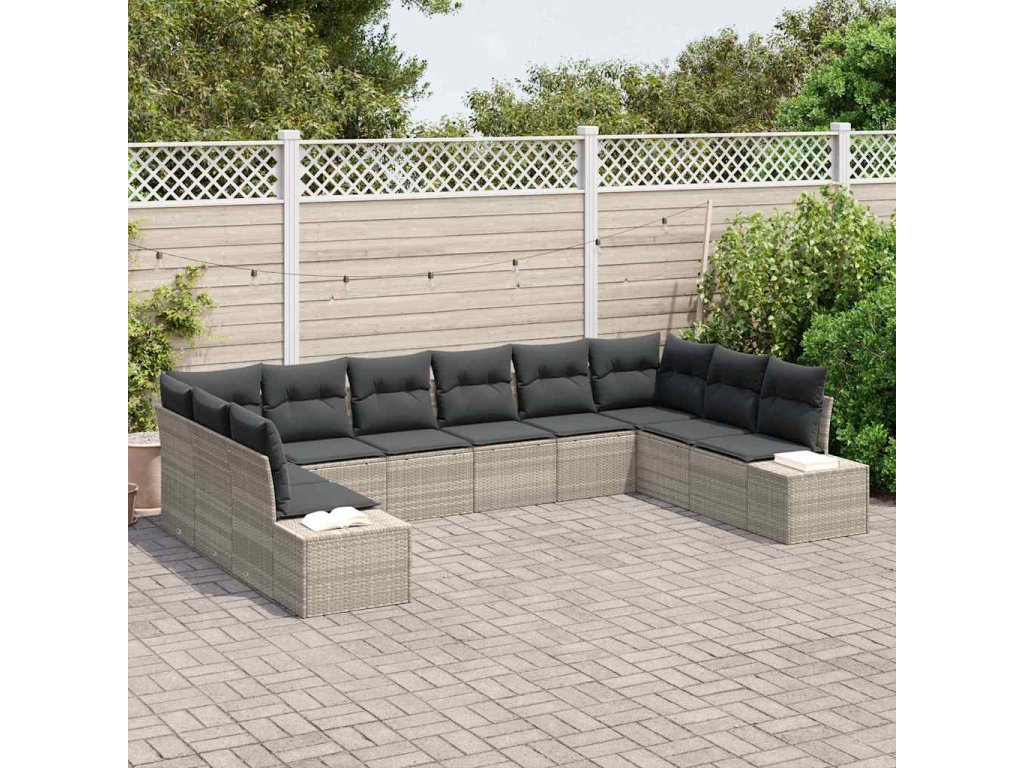 Tato sada zahradních pohovek posouvá venkovní odpočinek na novou úroveň díky modernímu designu a praktickosti. Obsahuje deset sekčních částí v chlazené světle šedé a černé barvě, takže umožňuje flexibilní sezení ideální pro balkony, zahrady nebo terasy. Přidává šmrnc každému venkovnímu prostoru a pohodlně pojme až deset dospělých.