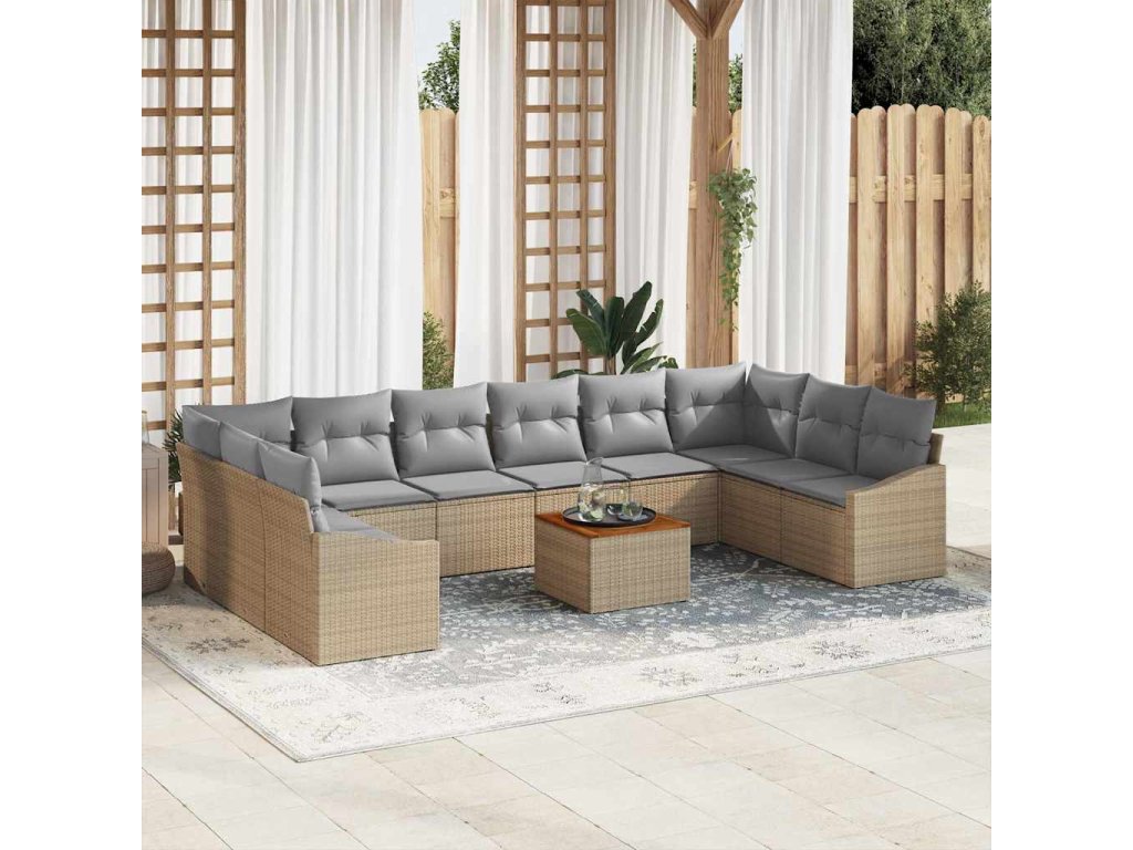 - Vysoce kvalitní materiály: Vyrobeno z kombinace PE ratanu, pevných ocelových rámů s práškovým nátěrem a pevného akátového stolu, tahle pohovková sada je odolná a hezká. Tyto materiály byly zvoleny jak pro trvanlivost venku, tak pro skvělý vzhled ve tvém prostoru.