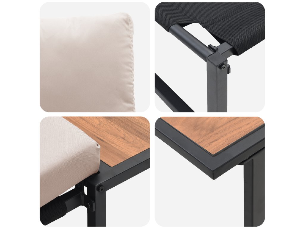 - Pevná konstrukce: Vyrobená z práškově lakované oceli a odolného polyesteru, navržena pro dlouhou životnost venku.